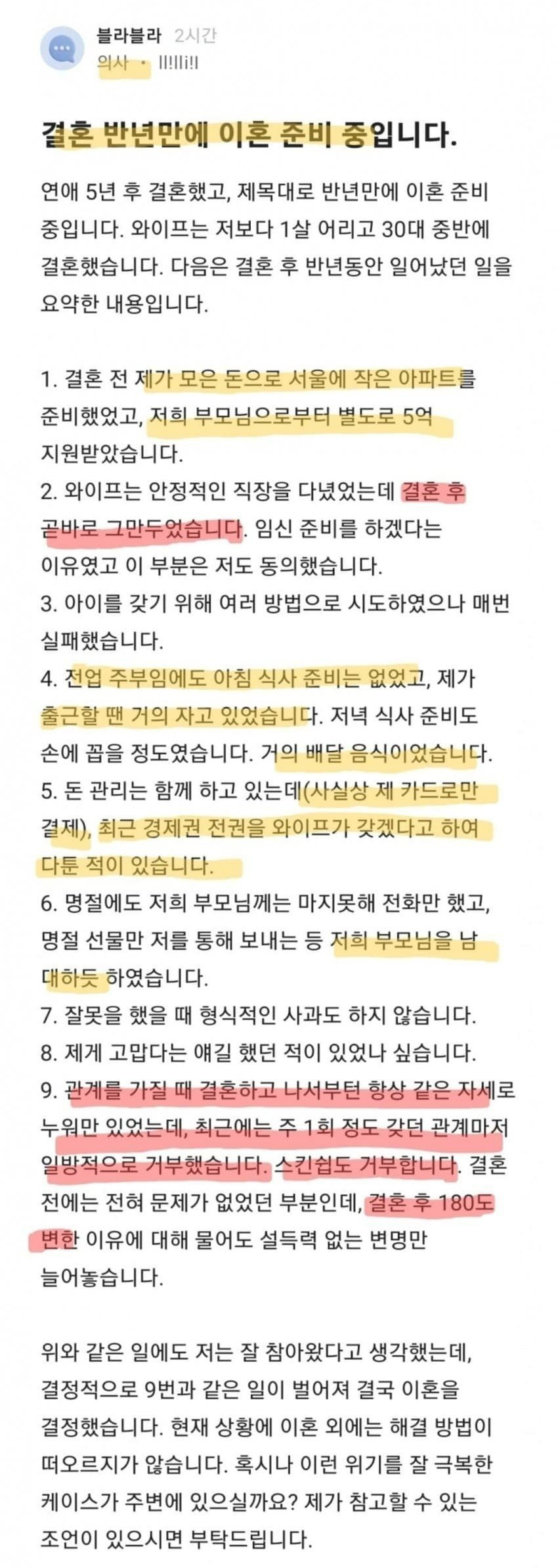 결혼 반년만에 이ㅎ 결심한 의사형 + 후기