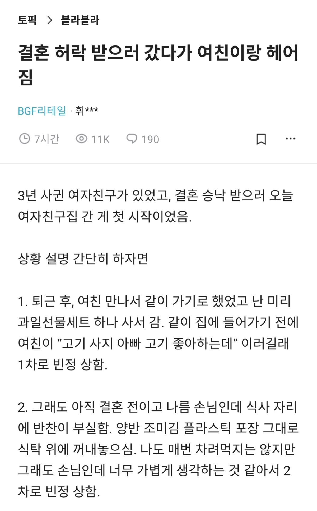 결혼 허락 받으러 갔다가 여친이랑 헤ㅇ짐