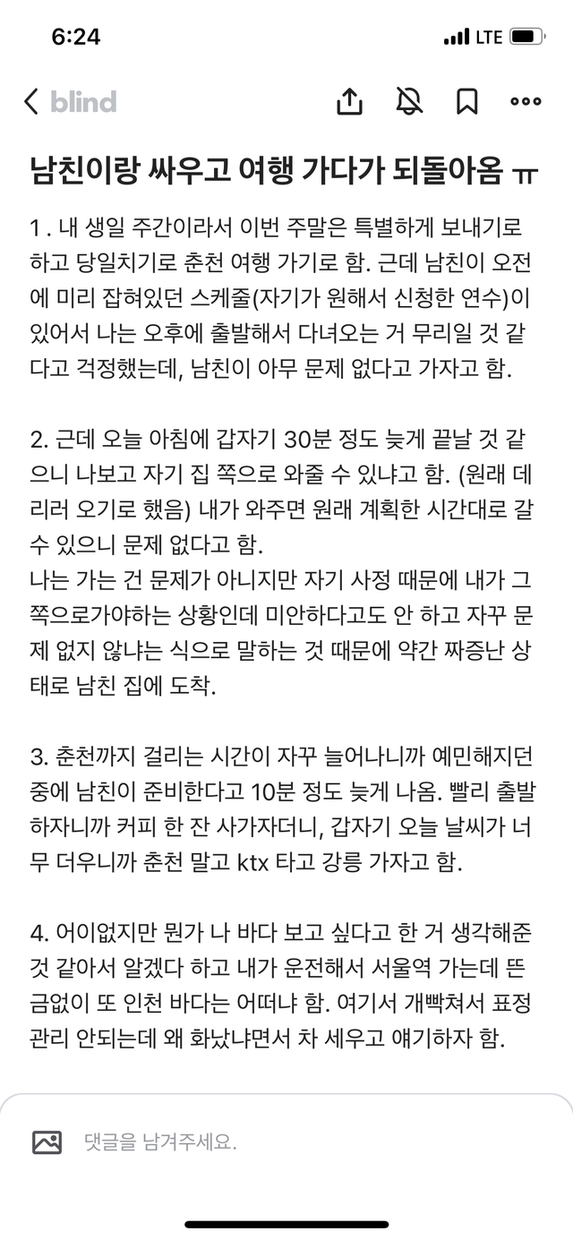 남친이랑 싸우고 여행가다가 되돌아 옴 ㅜ