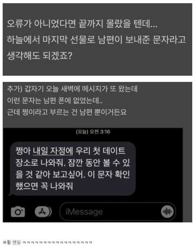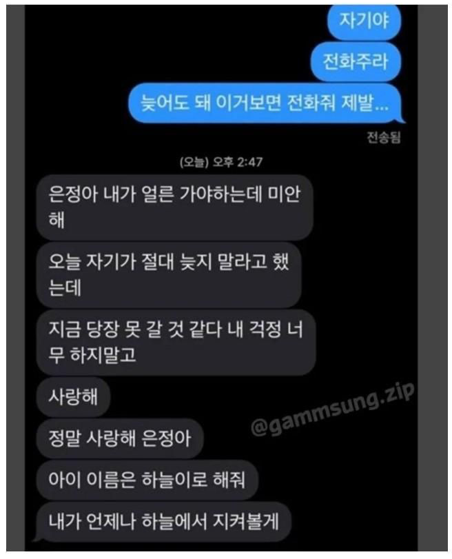 남편 장례 삼일장 치르고 온 문자...