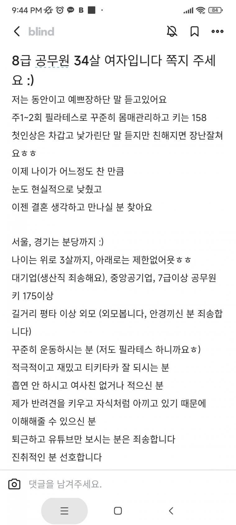 눈낮췄다는 34세 8급 공무원 여성