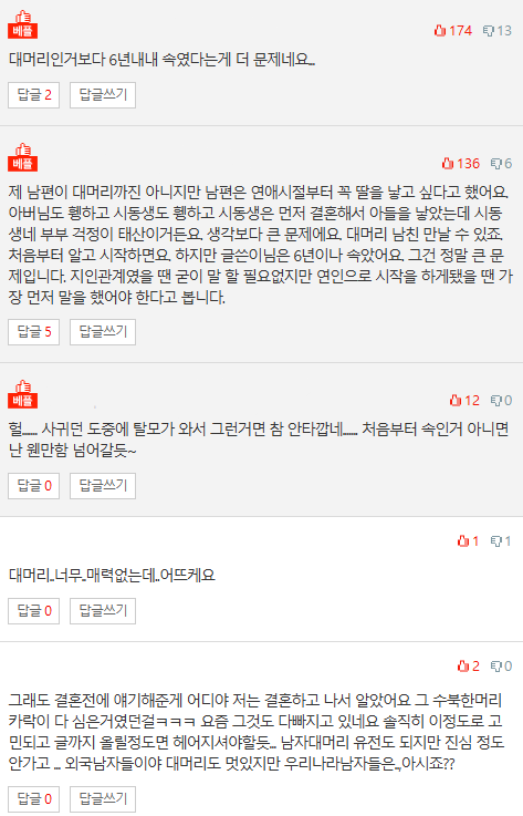대머리랑은 결혼하기 싫어요.
