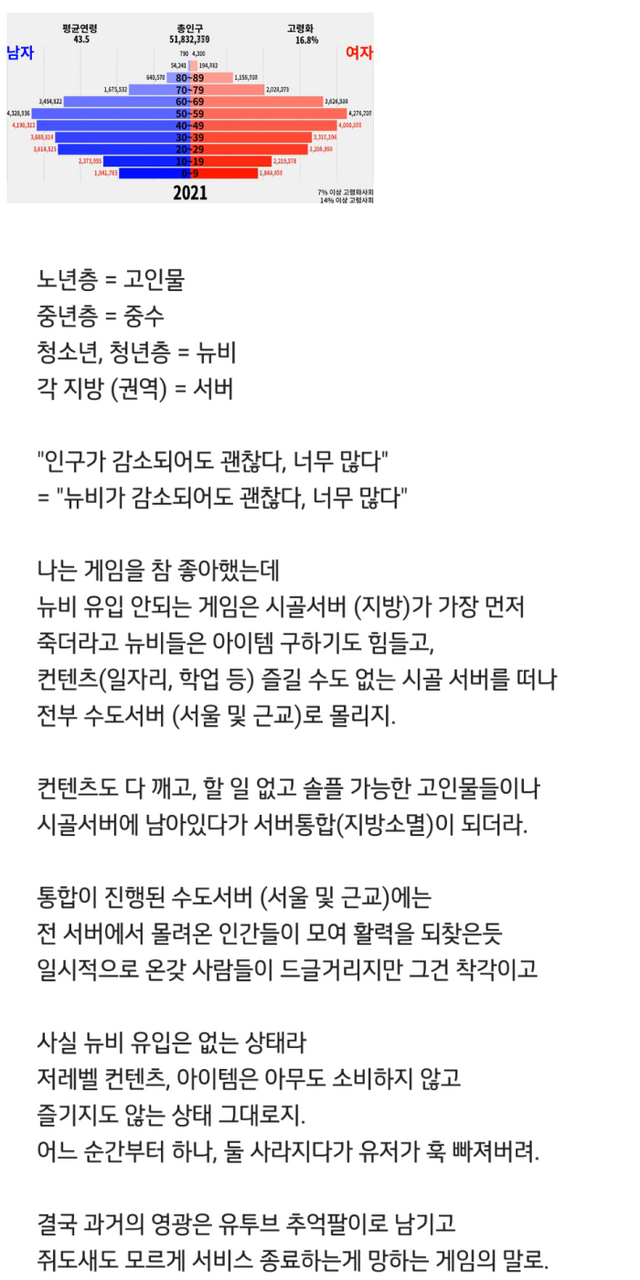 대한민국은 망해가는 게임과 같다