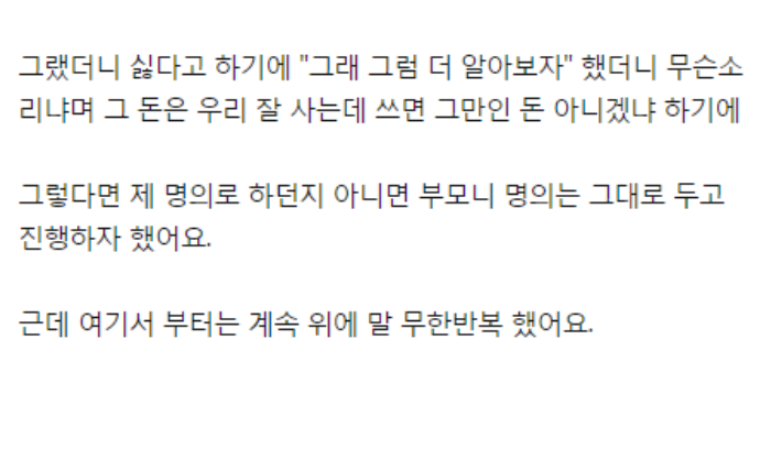 카테고리 없음 반반결혼 하자며 울 부모님 집 공동명의로 이전하자네요 by 마케팅하는개발자 2024. 6. 17. 반응형 반응형 공유하기 게시글 관리 공부하는개발자 저작자표시 (새창열림) 댓글