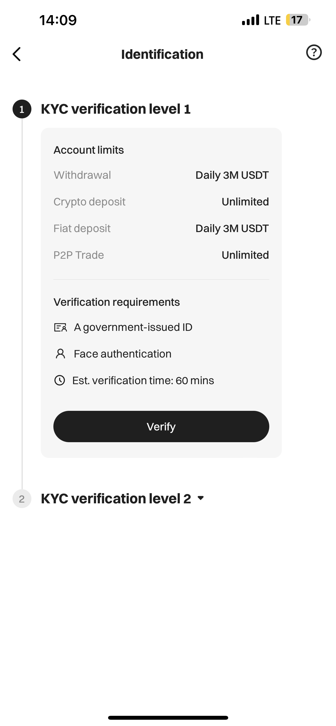 - 비트겟 웹사이트나 모바일 앱에서 KYC 인증 화면으로 이동합니다.