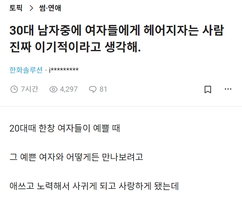 카테고리 없음 사귀다가 30대에 이별하는 남자는 이기적이라는 블라녀 by 마케팅하는개발자 2024. 5. 15. 반응형 반응형 공유하기 게시글 관리 공부하는개발자 저작자표시 (새창열림) 댓글