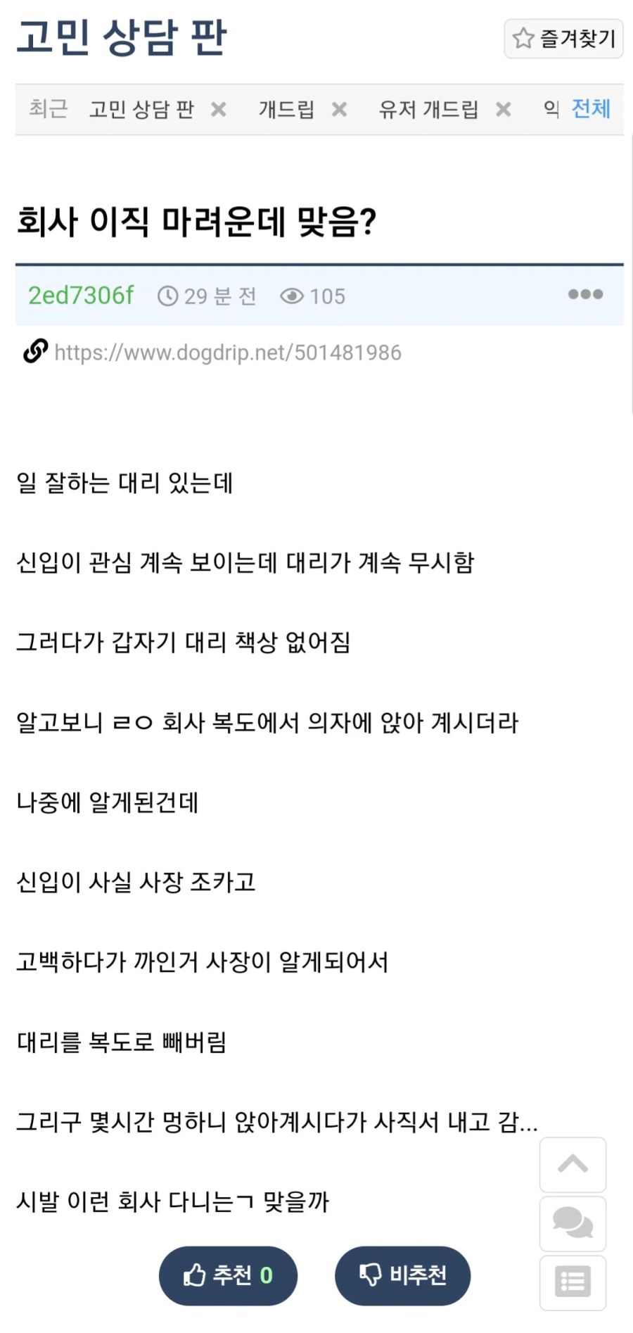사장 조카 고백 거절했더니 퇴사ㄷ함