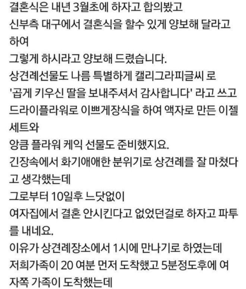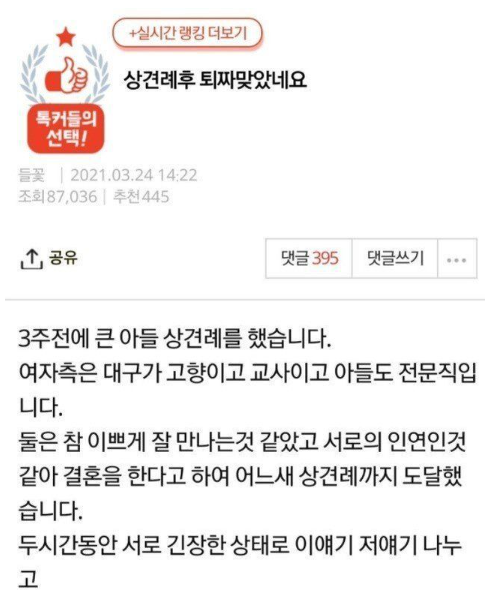 상견례후 퇴짜 ㅁ았네요..ㄷㄷ