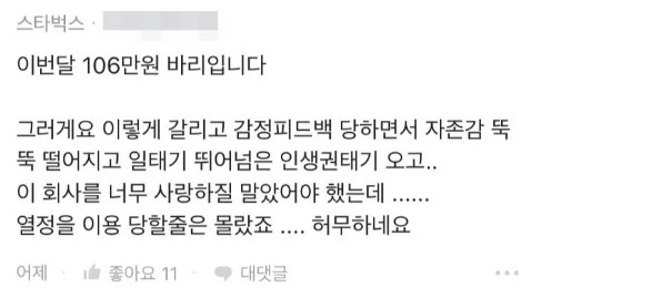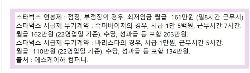 스타벅스 정직원 월급 수준 ㄷㄷㄷ