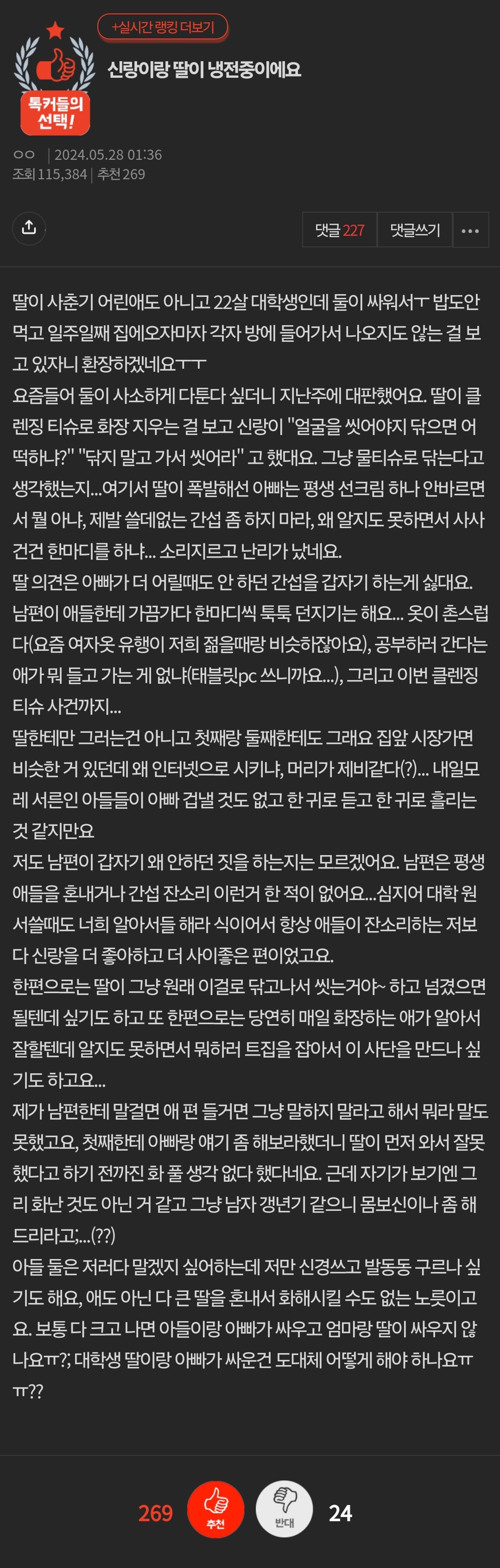 신랑이랑 딸이 싸우고 냉전중이예요...