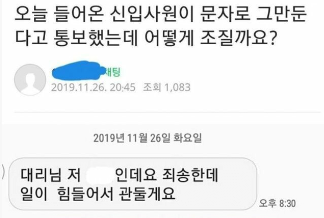 신입사원 퇴사 방식 논란