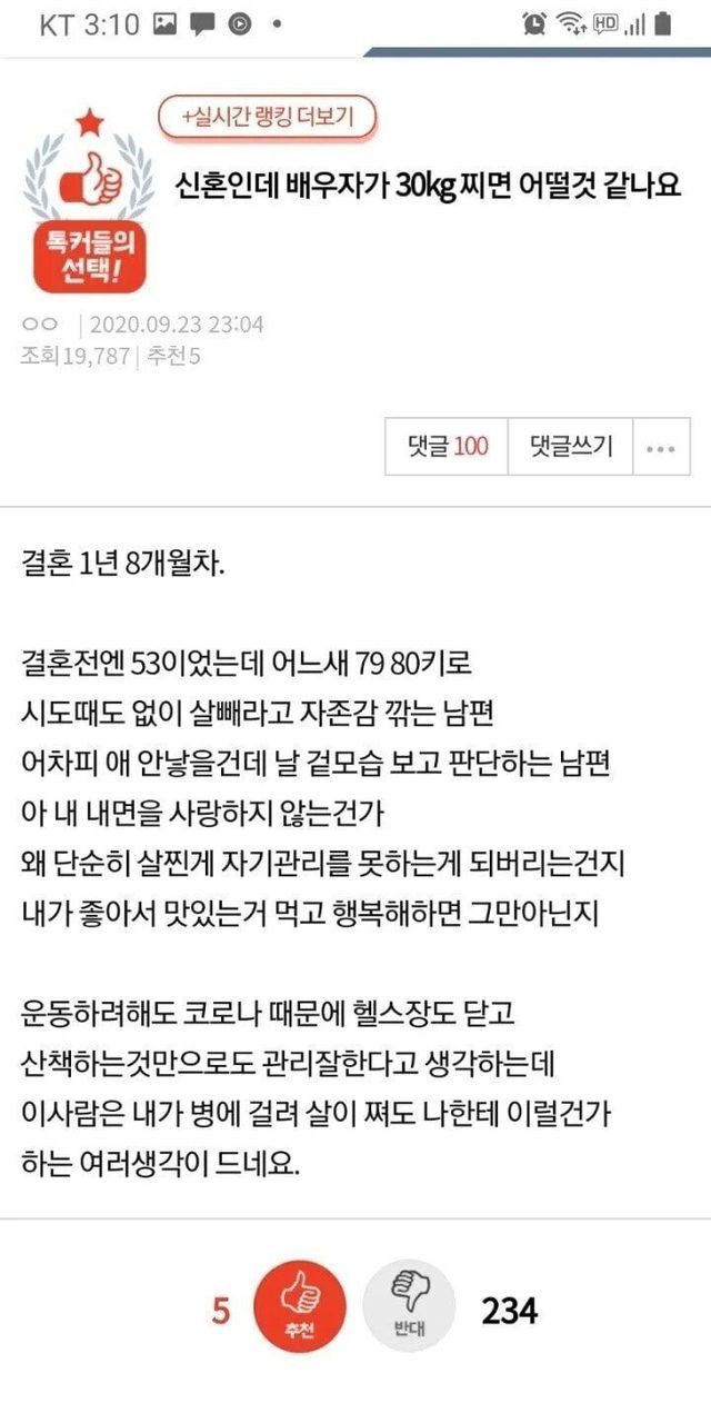 카테고리 없음 신혼인데 배우자가 30kg 찌면 어떨것, 같나요... by 마케팅하는개발자 2024. 6. 1. 반응형 반응형 공유하기 게시글 관리 공부하는개발자 저작자표시 (새창열림) 댓글