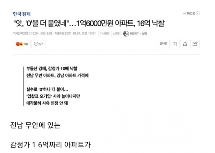 실수해서 낙찰된 아파트 ㄷㄷ