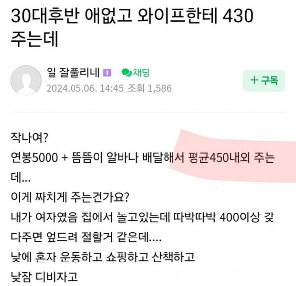 애 없고 와이프한테 430 주는데..