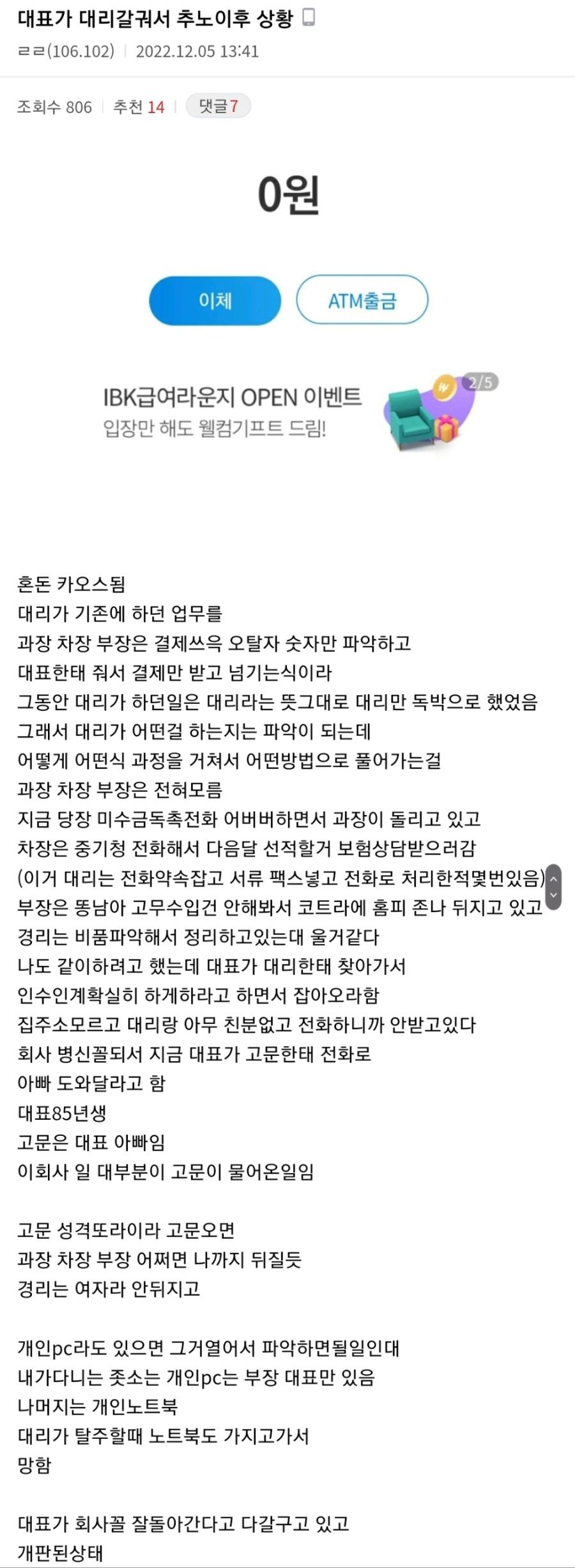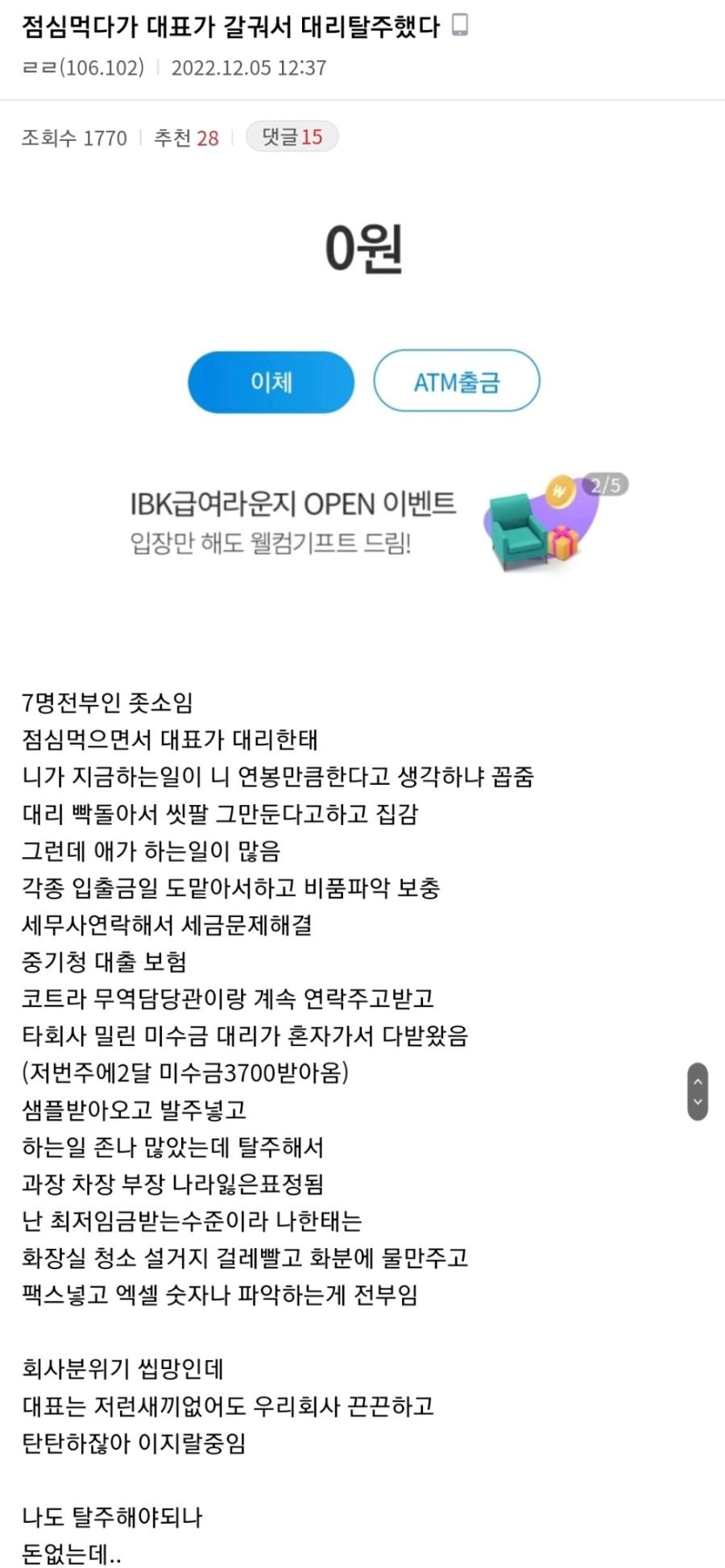 어떤 회사의 대리가 탈주한 이유 ㄷㄷㄷ