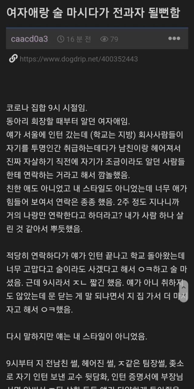 여자애랑 술 마셨다가 전과자될 뻔한 썰