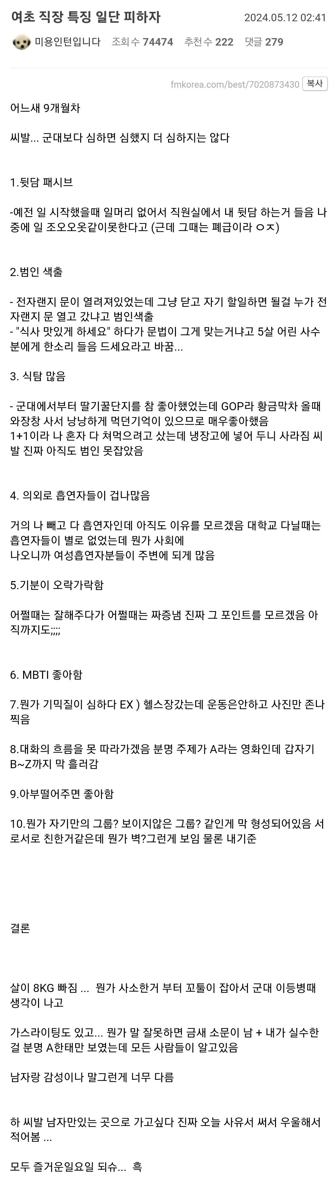여초 직장 특징 일단 피하자.jpgㄷㄷㄷ