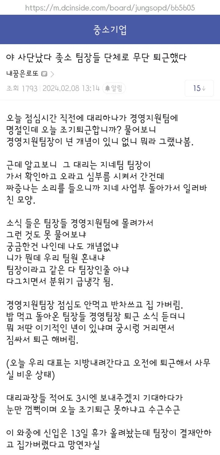 연휴 전날 ㅈ소 팀장들 단체 무단 퇴근
