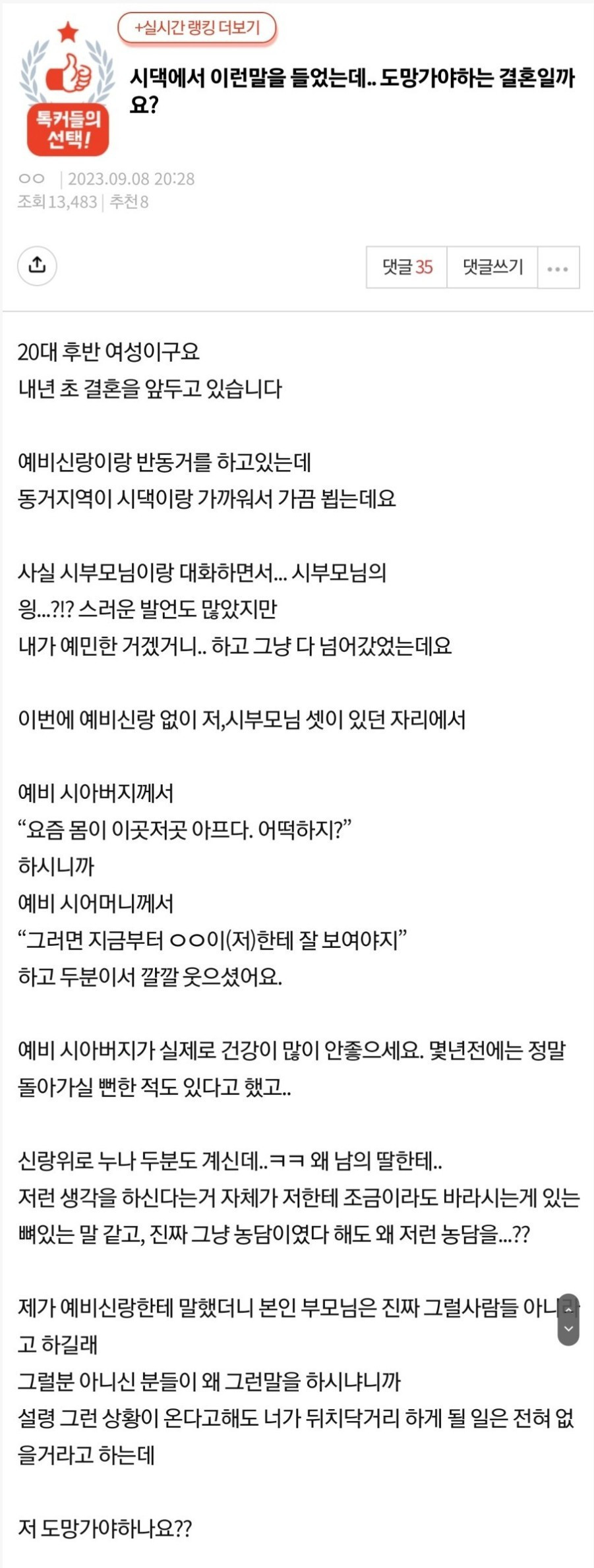 예비시댁에서 들었는데 저 도망가야 하나요?