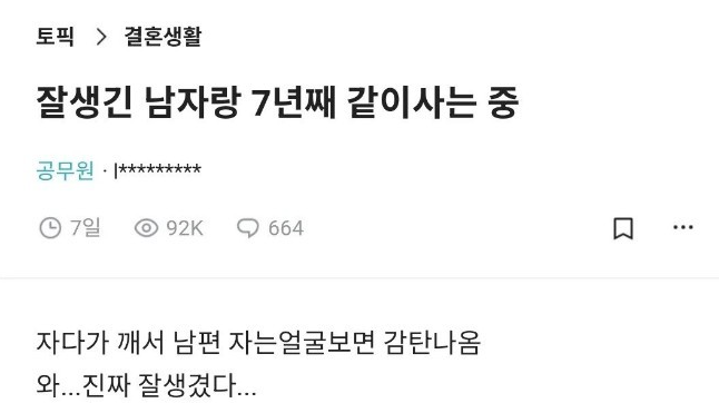 잘생긴 남자랑 사는 기분을 말해주는 블라녀