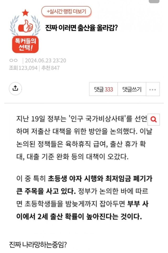 저출산 해결방안 = 초등학생 야자?!