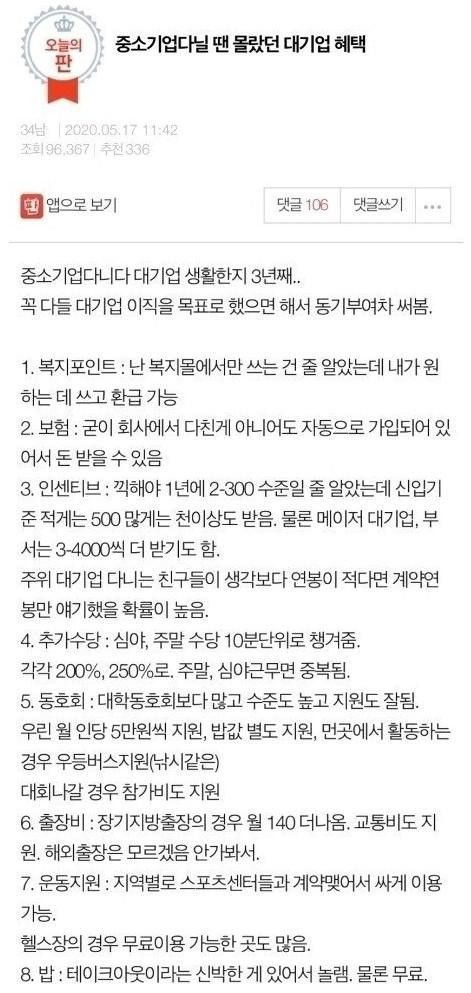 중소기업 다닐땐 몰랐던 대기업 해택..