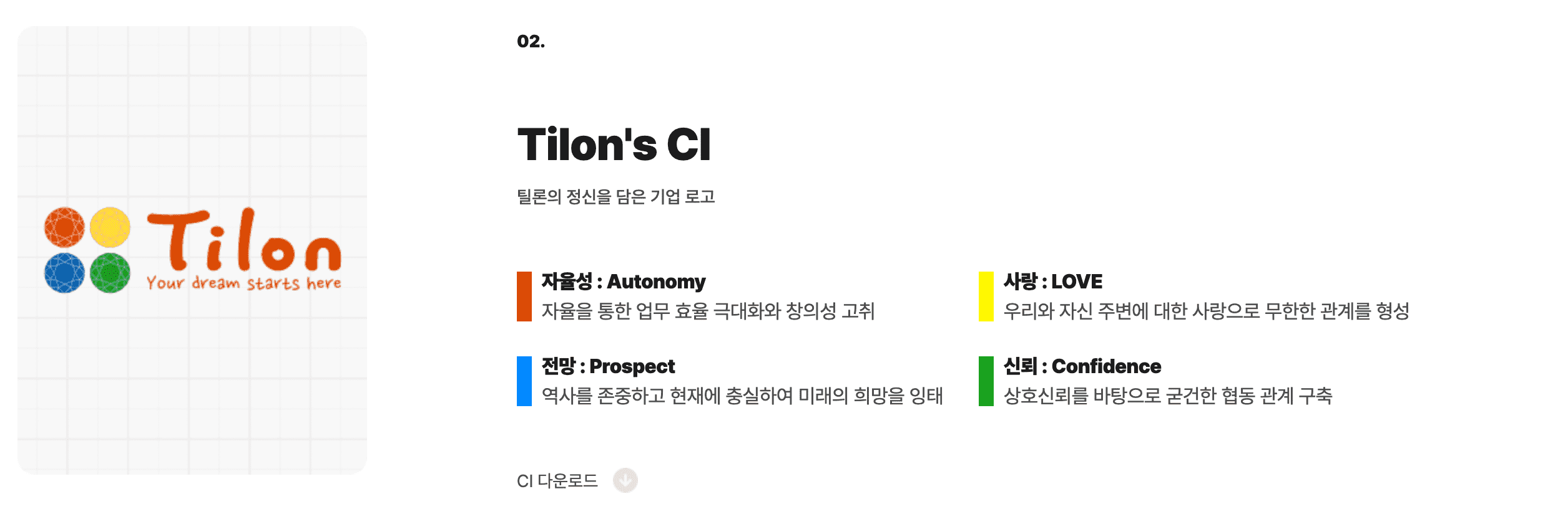 틸론(TILON)은 2001년에 설립된 기업으로, 클라우드 가상화 및 메타버스 오피스를 주요 사업으로 하고 있습니다. 회사는 메타버스 오피스 플랫폼과 블록체인 기술을 기반으로 한 전자문서 및 전자계약 솔루션, 가상 데스크톱 솔루션 등의 서비스를 제공하고 있습니다. 주요 제품으로는 구축형 VDI 솔루션 '디스테이션 v9.0'과 구독형 DaaS 솔루션 '엘클라우드 3.0'을 제공하고 있습니다.