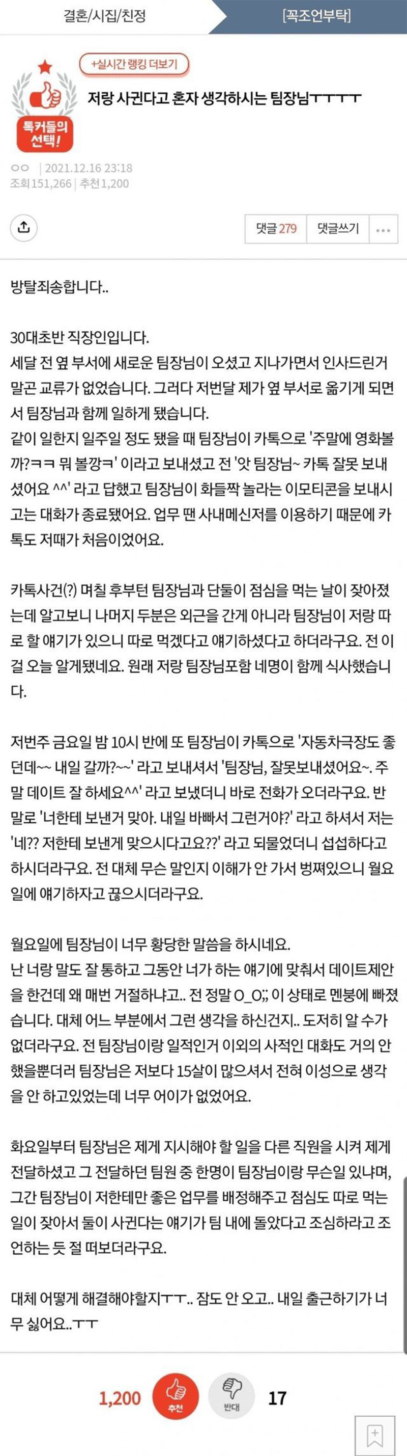 팀장님이 저랑 사귄다고 혼자 생각하세요..