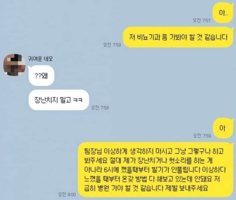 팀장님 저 오늘 병가 좀 낼 수 있을까요?