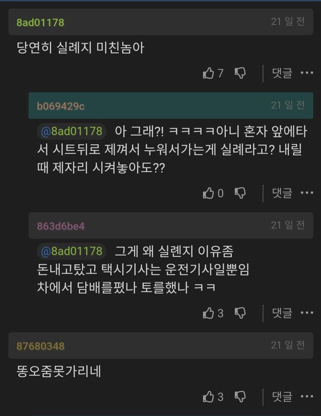 카테고리 없음 한때 커뮤에서 뜨거웠던 택시 앞좌석 비매너 논란 by 마케팅하는개발자 2024. 6. 26. 반응형 반응형 공유하기 게시글 관리 공부하는개발자 저작자표시 (새창열림) 댓글