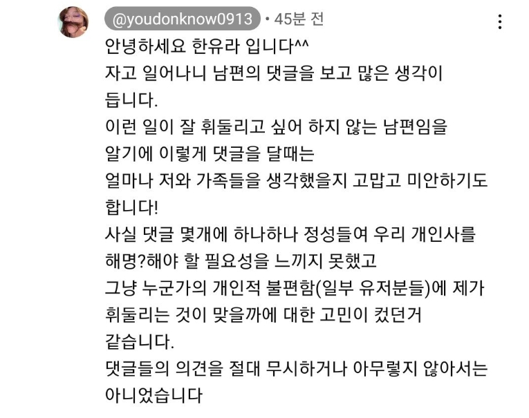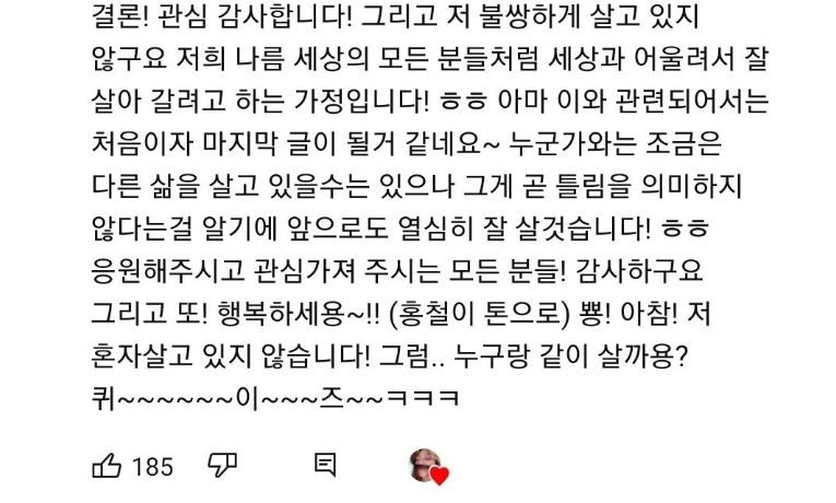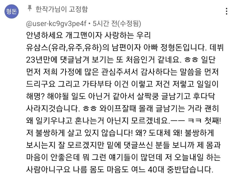 한유라 유튜브 정형돈 댓글 떴다