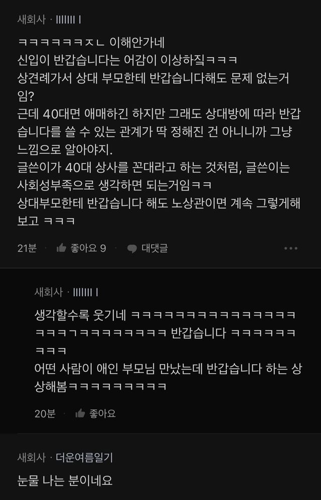 카테고리 없음 현재 블라인드에서 논란중인 신입사원의 인삿말 ㄷㄷ by 마케팅하는개발자 2024. 6. 13. 반응형 반응형 공유하기 게시글 관리 공부하는개발자 저작자표시 (새창열림) 댓글