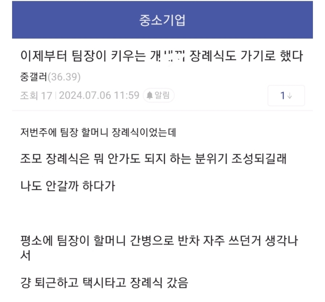 혼자서 팀장 조모상 갔다온 중소기업 갤러