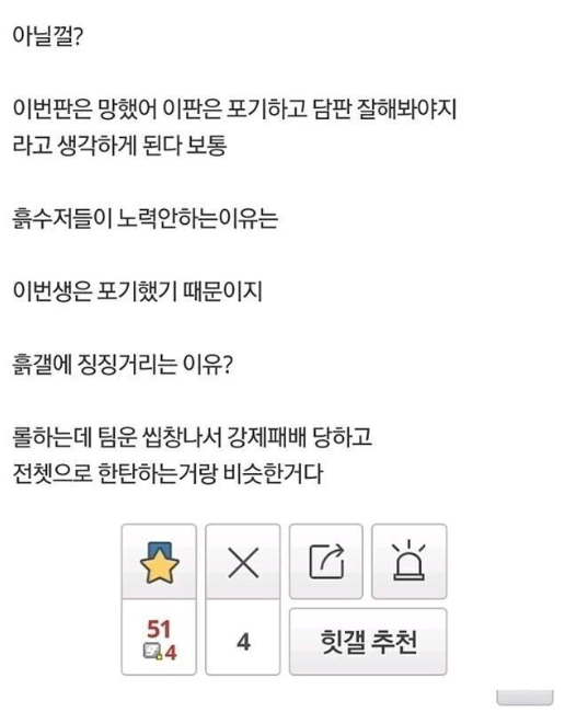 흙수저 갤러리 유저들의 한탄 모음