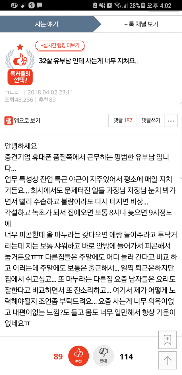 32살 유부남인데 사는게 너무 지쳐요