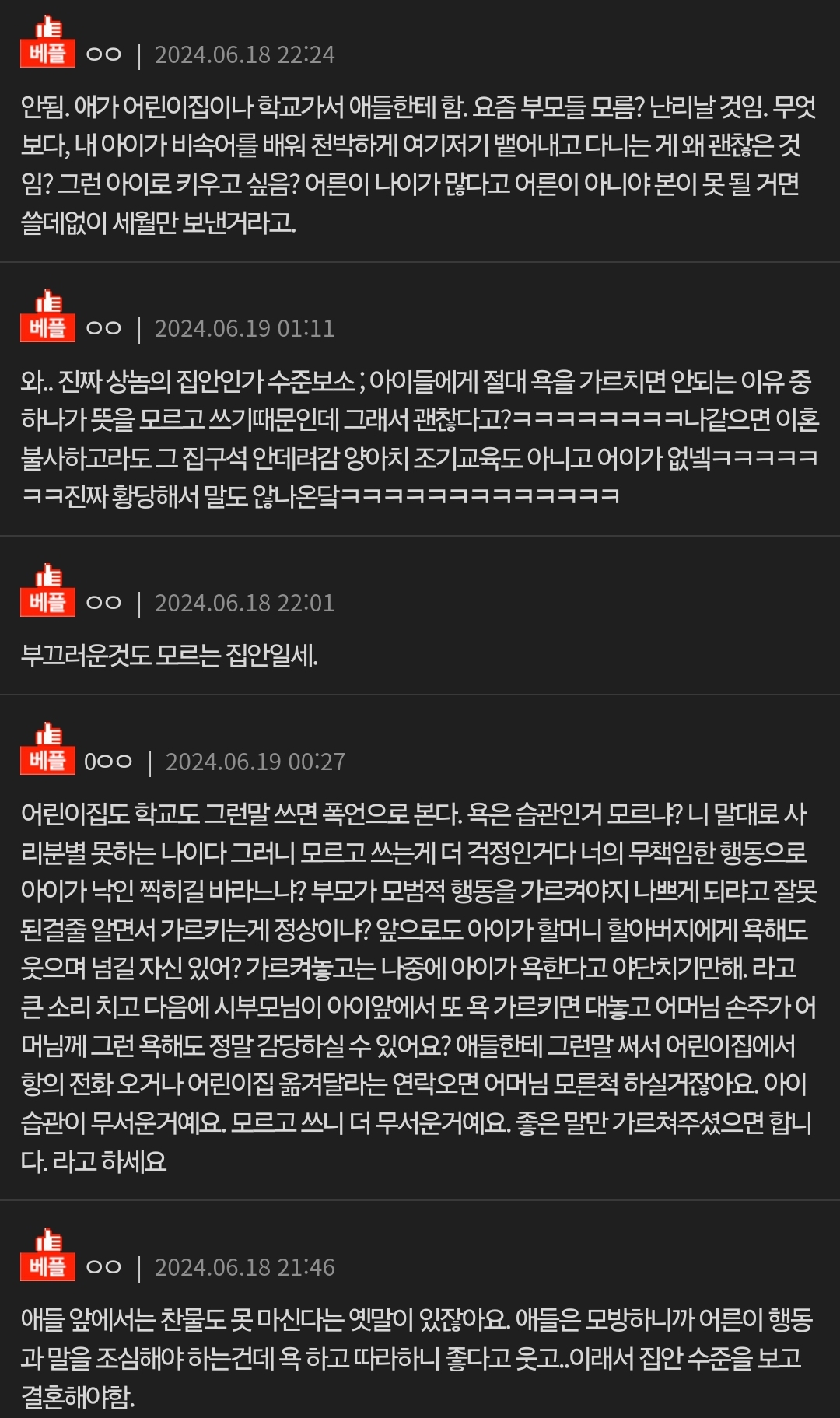 카테고리 없음 4살 아기한테 욕 가르쳐놓고 귀엽다고 웃는 시댁 by 마케팅하는개발자 2024. 6. 20. 반응형 반응형 공유하기 게시글 관리 공부하는개발자 저작자표시 (새창열림) 댓글