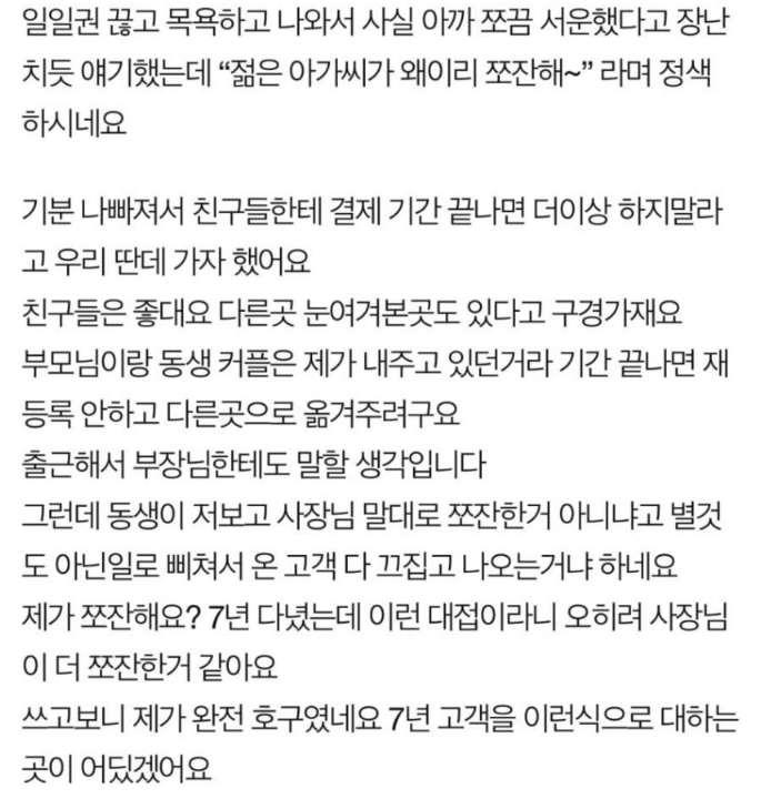 카테고리 없음 7년간 다닌 헬스장 사장한테 빈정 상한 판녀 by 마케팅하는개발자 2024. 6. 18. 반응형 반응형 공유하기 게시글 관리 공부하는개발자 저작자표시 (새창열림) 댓글
